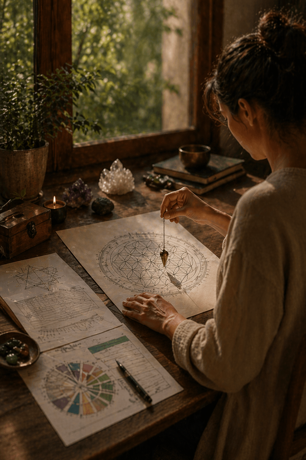 Os gráficos radiônicos emitem frequências de equilíbrio, cura e liberação, atuando diretamente nos campos sutis para dissolver bloqueios, restaurar a harmonia e direcionar a energia para o seu fluxo natural. Cada forma, símbolo e geometria carrega uma vibração específica que ajuda a realinhar o corpo energético, promovendo bem-estar, leveza e reconexão com o seu próprio centro.